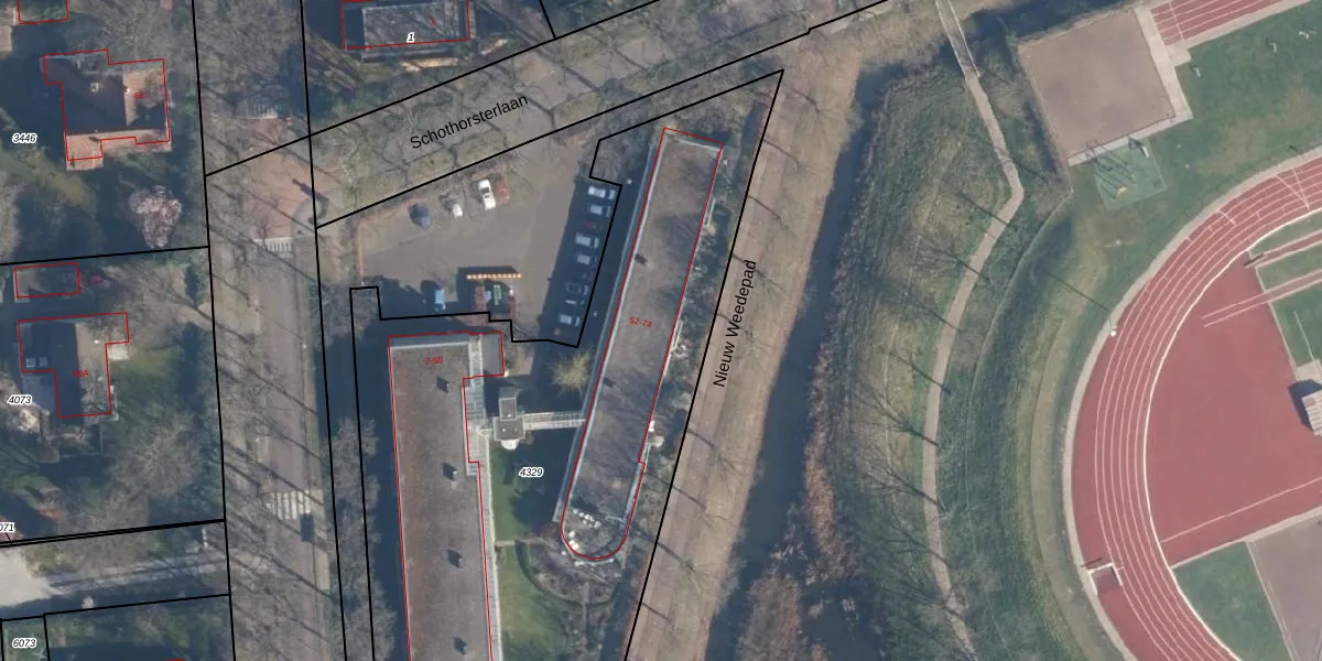 Het perceel waarop Schothorsterlaan 66 staat heeft een oppervlakte van 3600 m². Dit is een zeer groot perceel. De perceeloppervlakte wordt geregistreerd door het Kadaster. Gedetailleerde informatie over de maten van dit perceel kunt u vinden in het rapport Kadastrale kaart met maatvoering van Schothorsterlaan 66.