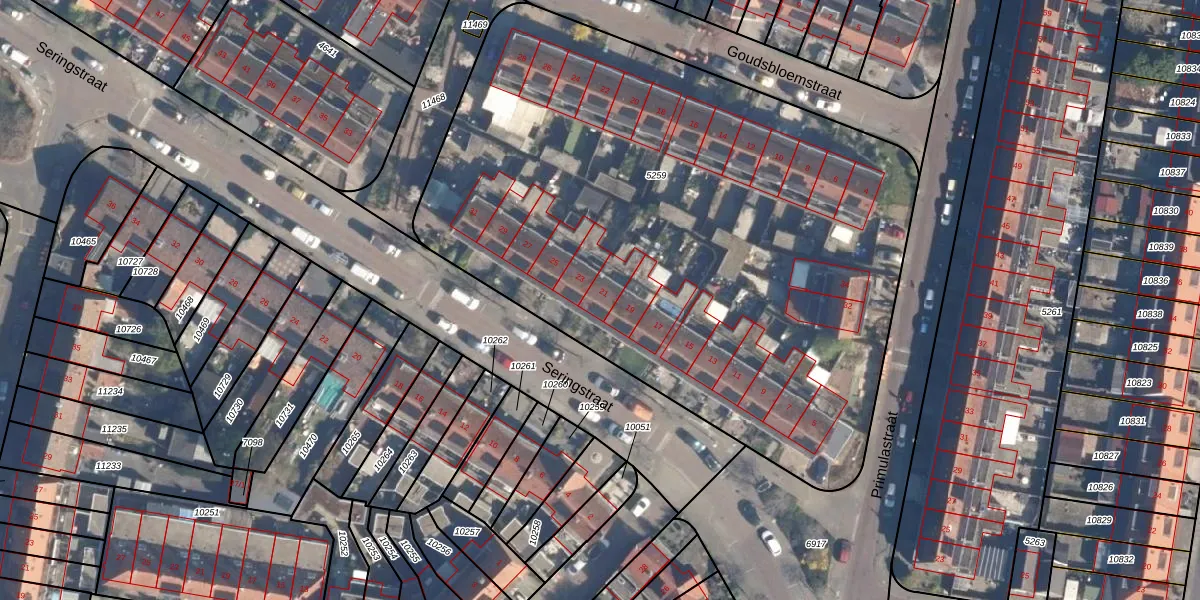 Het perceel waarop Seringstraat 21 staat heeft een oppervlakte van 4099 m². Dit is een zeer groot perceel. De perceeloppervlakte wordt geregistreerd door het Kadaster. Gedetailleerde informatie over de maten van dit perceel kunt u vinden in het rapport Kadastrale kaart met maatvoering van Seringstraat 21.