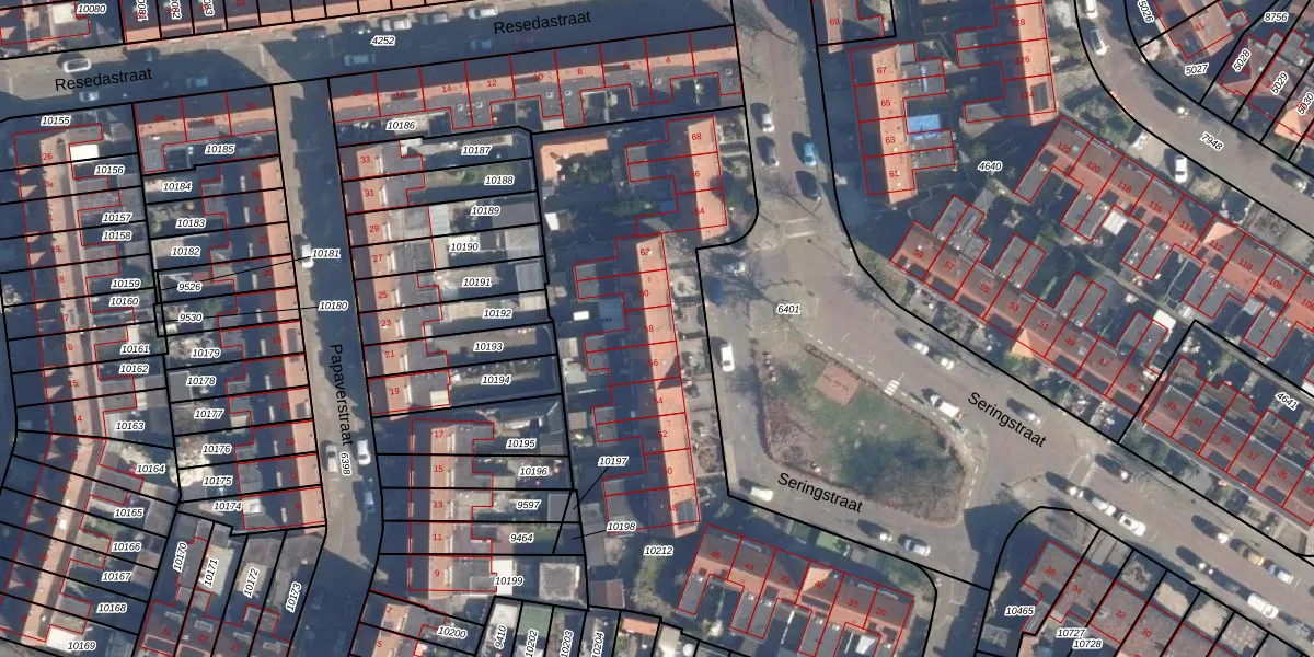Het perceel waarop Seringstraat 58 staat heeft een oppervlakte van 2659 m². Dit is een zeer groot perceel. De perceeloppervlakte wordt geregistreerd door het Kadaster. Gedetailleerde informatie over de maten van dit perceel kunt u vinden in het rapport Kadastrale kaart met maatvoering van Seringstraat 58.