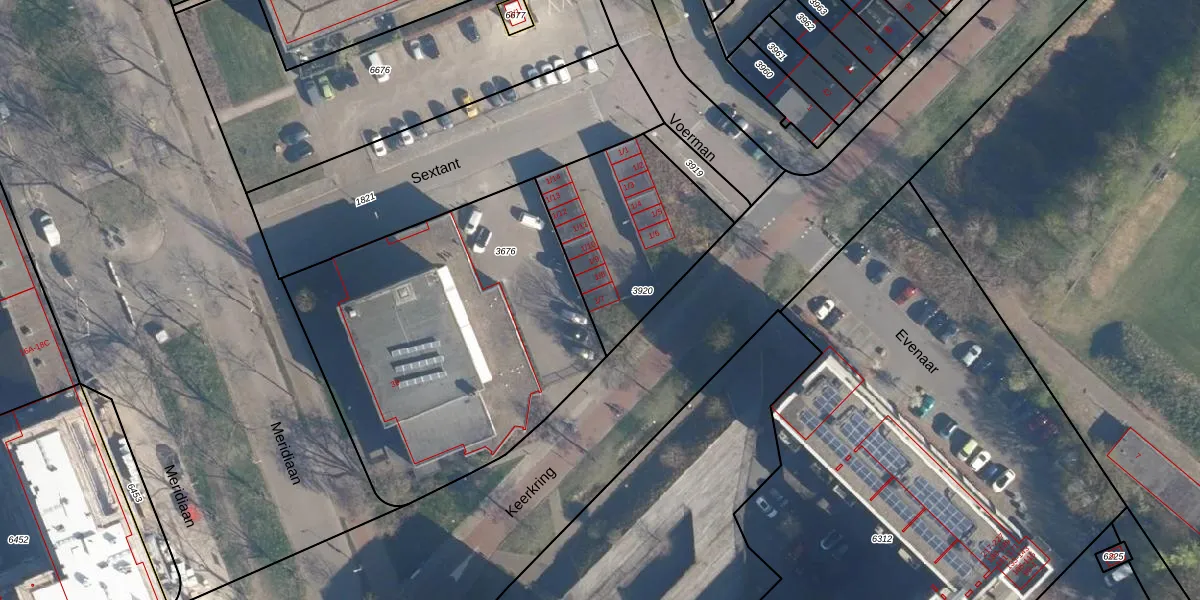 Het perceel waarop Sextant 1-7 staat heeft een oppervlakte van 646 m². Dit is een groot perceel. De perceeloppervlakte wordt geregistreerd door het Kadaster. Gedetailleerde informatie over de maten van dit perceel kunt u vinden in het rapport Kadastrale kaart met maatvoering van Sextant 1-7.