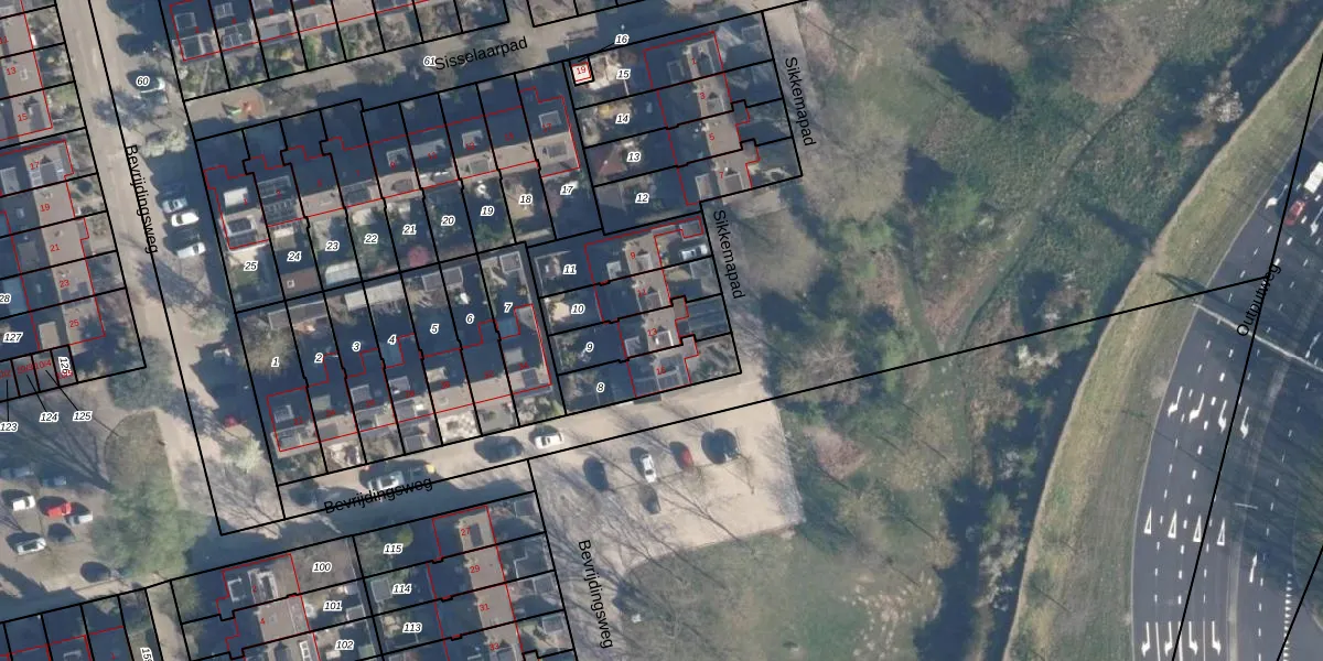 Het perceel waarop Sikkemapad 13 staat heeft een oppervlakte van 163 m². Dit is een middelgroot perceel. De perceeloppervlakte wordt geregistreerd door het Kadaster. Gedetailleerde informatie over de maten van dit perceel kunt u vinden in het rapport Kadastrale kaart met maatvoering van Sikkemapad 13.