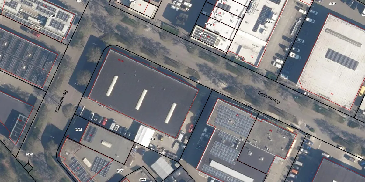 Het perceel waarop Siliciumweg 30 staat heeft een oppervlakte van 2763 m². Dit is een zeer groot perceel. De perceeloppervlakte wordt geregistreerd door het Kadaster. Gedetailleerde informatie over de maten van dit perceel kunt u vinden in het rapport Kadastrale kaart met maatvoering van Siliciumweg 30.