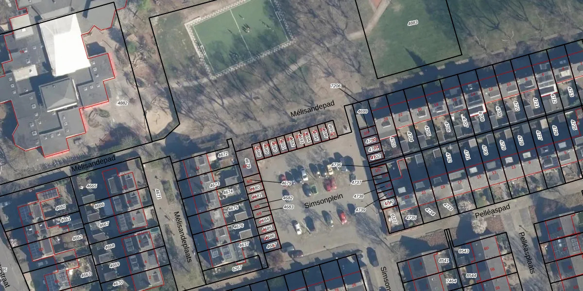 Gebruik de zoekbalk of klik op een perceel voor informatie over de adressen binnen dit perceel.