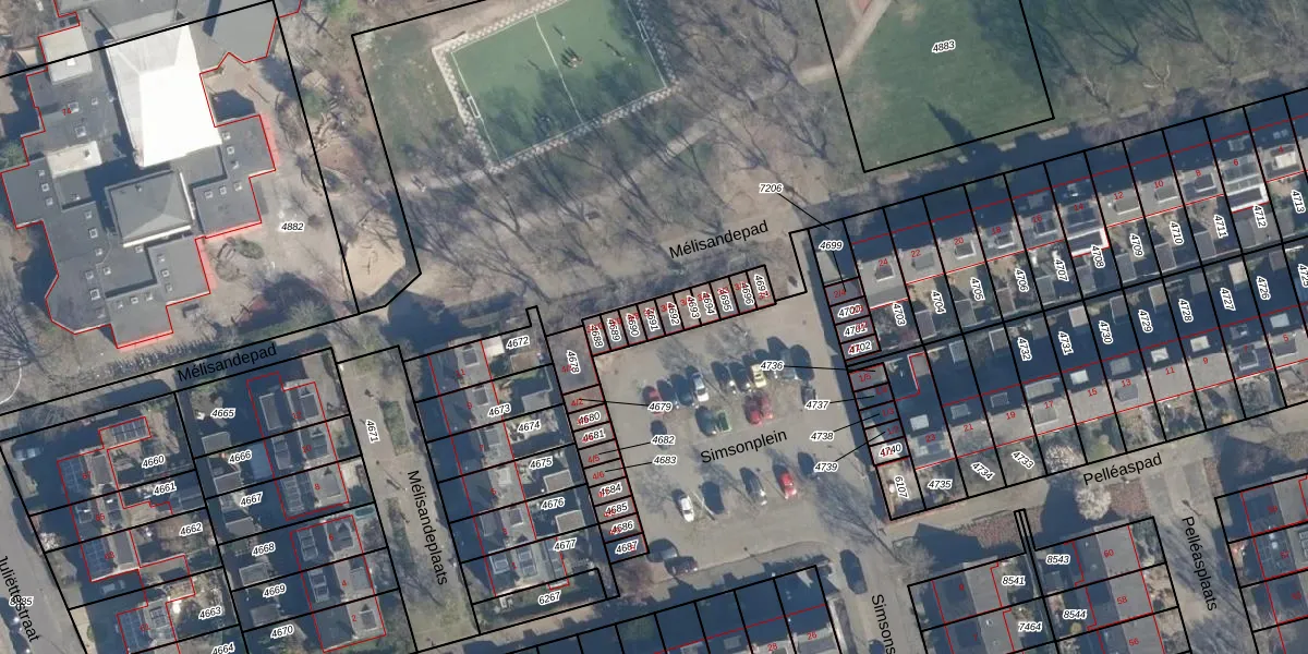 Het perceel waarop Simsonplein 3-7 staat heeft een oppervlakte van 18 m². Dit is een klein perceel. De perceeloppervlakte wordt geregistreerd door het Kadaster. Gedetailleerde informatie over de maten van dit perceel kunt u vinden in het rapport Kadastrale kaart met maatvoering van Simsonplein 3-7.