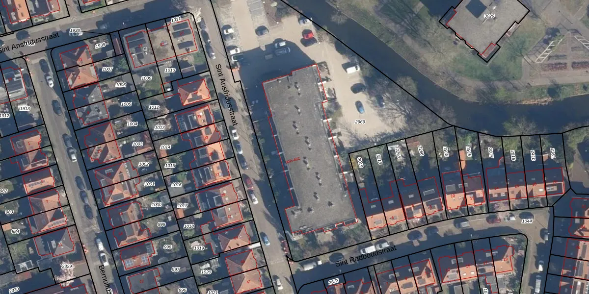 Het perceel waarop Sint Ansfridusstraat 30-D staat heeft een oppervlakte van 3494 m². Dit is een zeer groot perceel. De perceeloppervlakte wordt geregistreerd door het Kadaster. Gedetailleerde informatie over de maten van dit perceel kunt u vinden in het rapport Kadastrale kaart met maatvoering van Sint Ansfridusstraat 30-D.