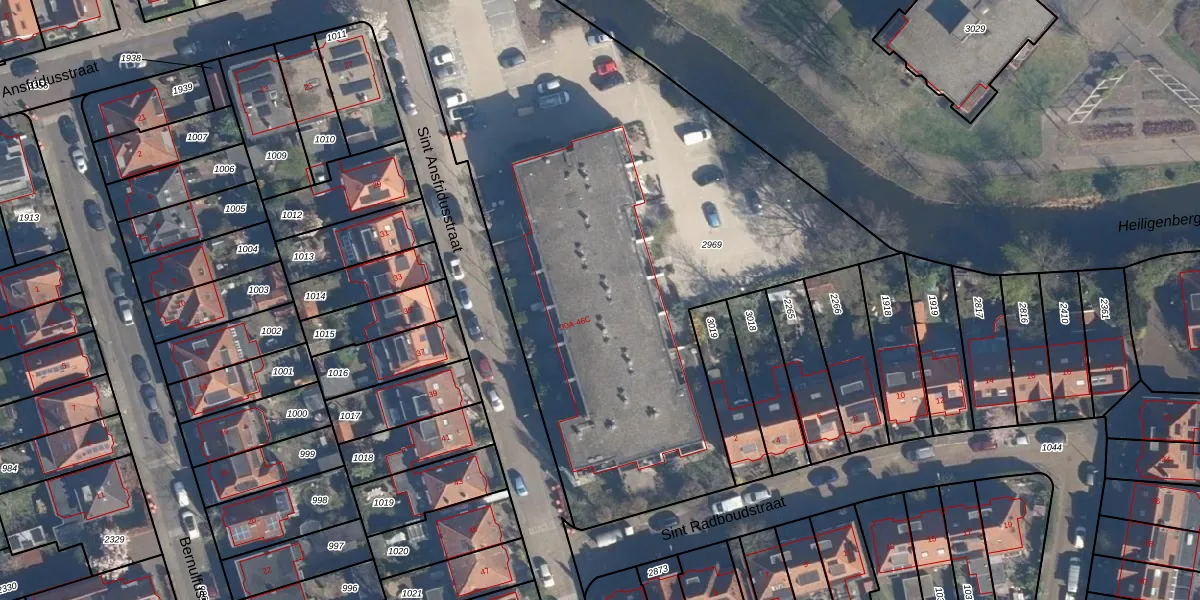 Het perceel waarop Sint Ansfridusstraat 32-G staat heeft een oppervlakte van 3494 m². Dit is een zeer groot perceel. De perceeloppervlakte wordt geregistreerd door het Kadaster. Gedetailleerde informatie over de maten van dit perceel kunt u vinden in het rapport Kadastrale kaart met maatvoering van Sint Ansfridusstraat 32-G.