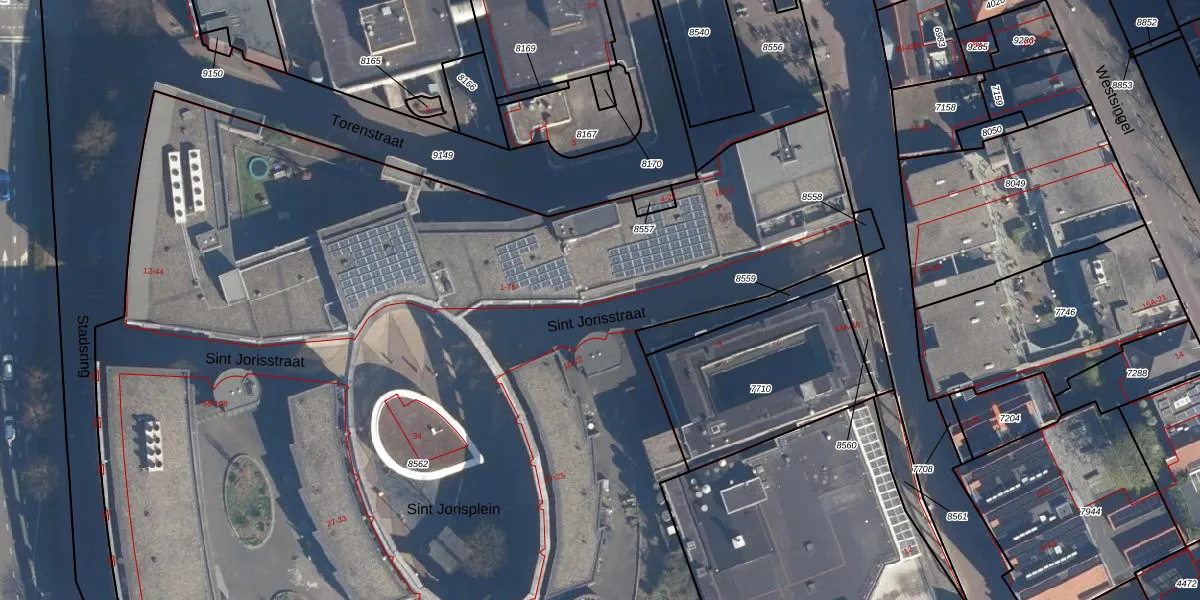 Het perceel waarop Sint Jorisstraat 15 staat heeft een oppervlakte van 1,2 ha. Dit is een zeer groot perceel. De perceeloppervlakte wordt geregistreerd door het Kadaster. Gedetailleerde informatie over de maten van dit perceel kunt u vinden in het rapport Kadastrale kaart met maatvoering van Sint Jorisstraat 15.
