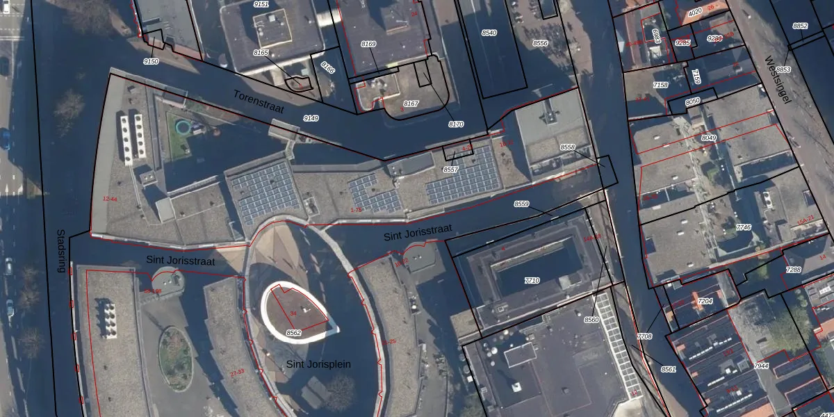 Het perceel waarop Sint Jorisstraat 25 staat heeft een oppervlakte van 1,2 ha. Dit is een zeer groot perceel. De perceeloppervlakte wordt geregistreerd door het Kadaster. Gedetailleerde informatie over de maten van dit perceel kunt u vinden in het rapport Kadastrale kaart met maatvoering van Sint Jorisstraat 25.