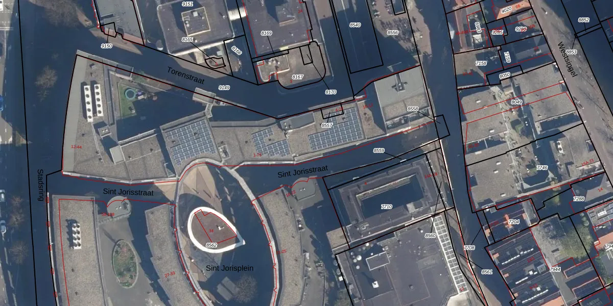 Het perceel waarop Sint Jorisstraat 27 staat heeft een oppervlakte van 1,2 ha. Dit is een zeer groot perceel. De perceeloppervlakte wordt geregistreerd door het Kadaster. Gedetailleerde informatie over de maten van dit perceel kunt u vinden in het rapport Kadastrale kaart met maatvoering van Sint Jorisstraat 27.