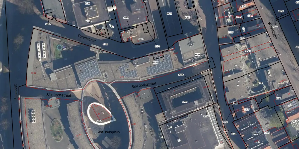 Sint Jorisstraat 31 is gelegen op kadastraal perceel AMF00E8562. Deze kadastrale aanduiding is uniek en wordt gebruikt door het Kadaster om eigendomsrechten en andere zakelijke rechten vast te leggen. Het perceel maakt onderdeel uit van de kadastrale gemeente Amersfoort.