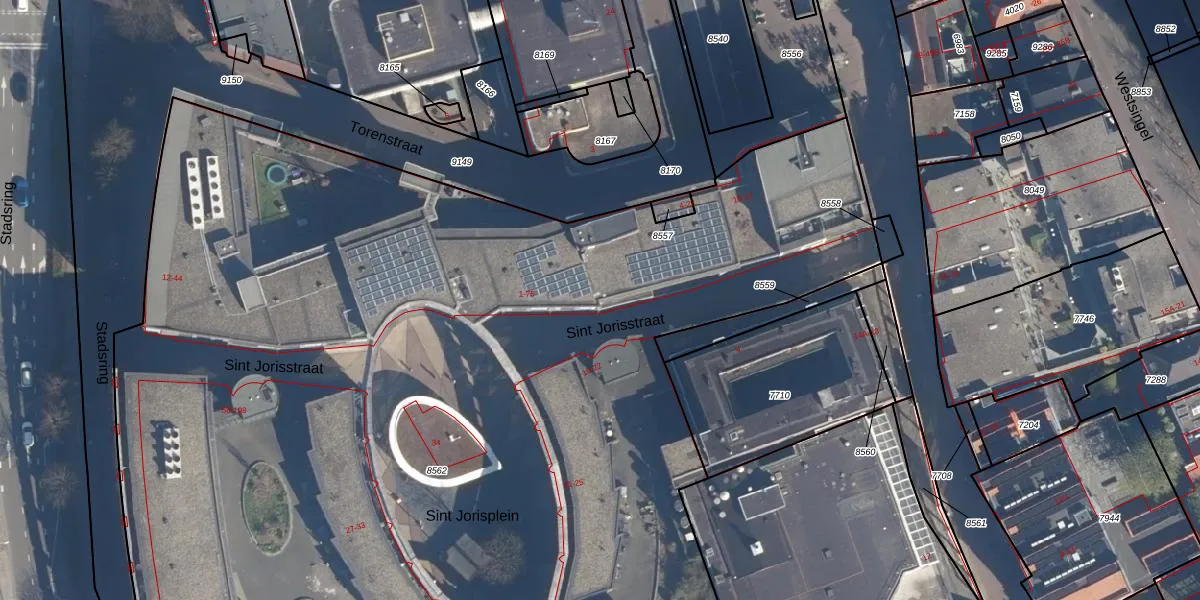 Sint Jorisstraat 33 is gelegen op kadastraal perceel AMF00E8562. Deze kadastrale aanduiding is uniek en wordt gebruikt door het Kadaster om eigendomsrechten en andere zakelijke rechten vast te leggen. Het perceel maakt onderdeel uit van de kadastrale gemeente Amersfoort.