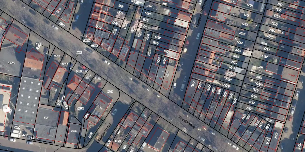 Het perceel waarop Soesterweg 147 staat heeft een oppervlakte van 108 m². Dit is een middelgroot perceel. De perceeloppervlakte wordt geregistreerd door het Kadaster. Gedetailleerde informatie over de maten van dit perceel kunt u vinden in het rapport Kadastrale kaart met maatvoering van Soesterweg 147.