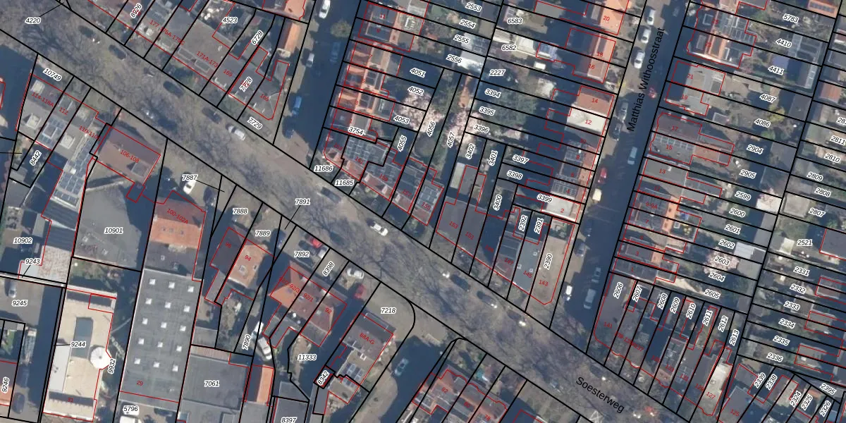 Soesterweg 155 is gelegen op kadastraal perceel AMF00D4057. Deze kadastrale aanduiding is uniek en wordt gebruikt door het Kadaster om eigendomsrechten en andere zakelijke rechten vast te leggen. Het perceel maakt onderdeel uit van de kadastrale gemeente Amersfoort.