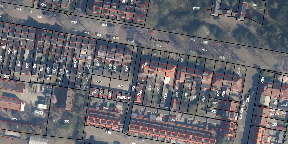 Het perceel waarop Soesterweg 156-C staat heeft een oppervlakte van 175 m². Dit is een middelgroot perceel. De perceeloppervlakte wordt geregistreerd door het Kadaster. Gedetailleerde informatie over de maten van dit perceel kunt u vinden in het rapport Kadastrale kaart met maatvoering van Soesterweg 156-C.