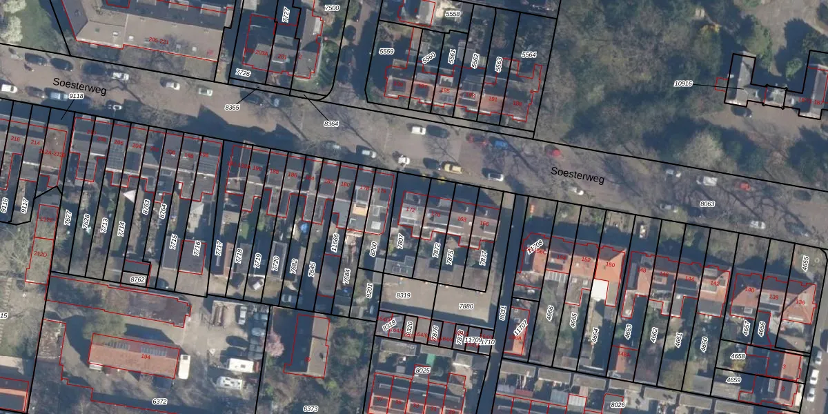 Soesterweg 172 is gelegen op kadastraal perceel AMF00D7807. Deze kadastrale aanduiding is uniek en wordt gebruikt door het Kadaster om eigendomsrechten en andere zakelijke rechten vast te leggen. Het perceel maakt onderdeel uit van de kadastrale gemeente Amersfoort.