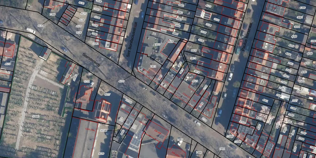 Gebruik de zoekbalk of klik op een perceel voor informatie over de adressen binnen dit perceel.