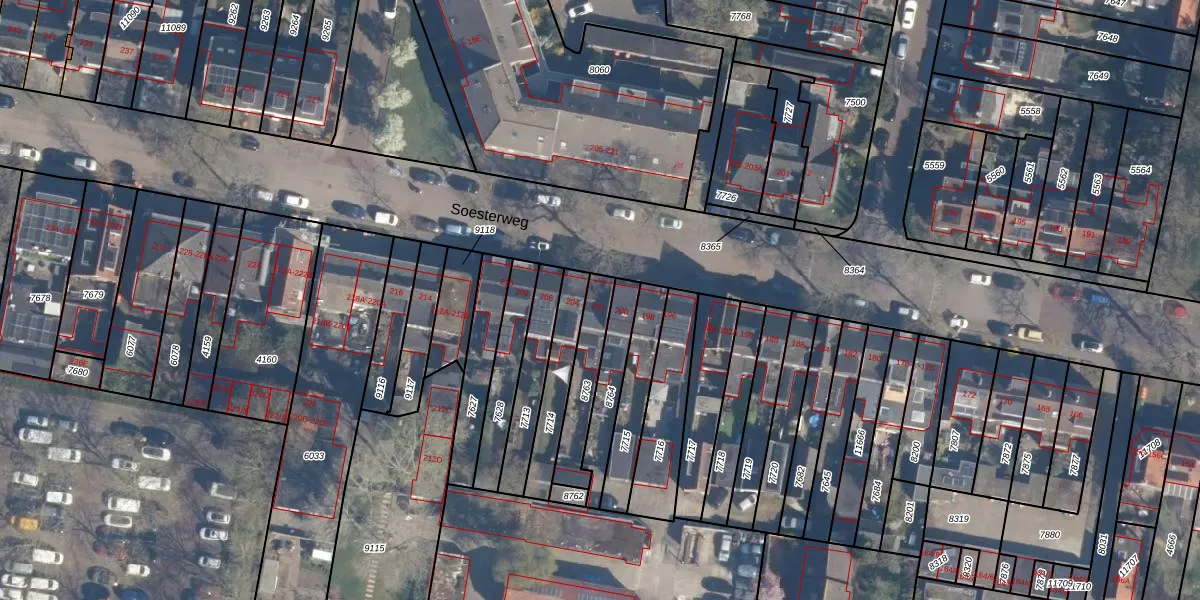 Soesterweg 202 is gelegen op kadastraal perceel AMF00D8763. Deze kadastrale aanduiding is uniek en wordt gebruikt door het Kadaster om eigendomsrechten en andere zakelijke rechten vast te leggen. Het perceel maakt onderdeel uit van de kadastrale gemeente Amersfoort.