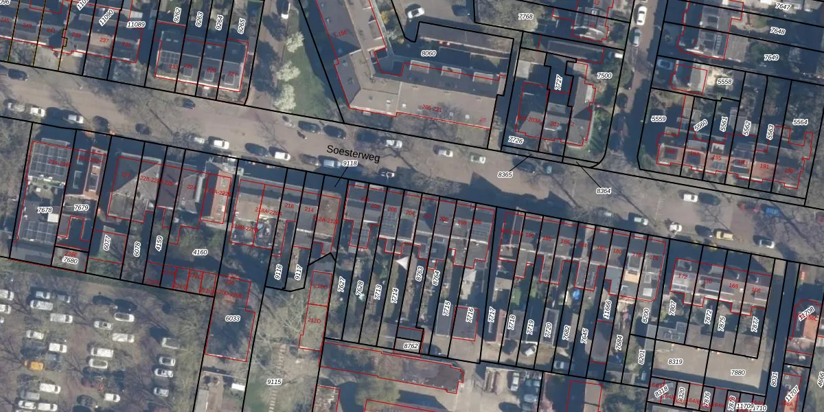 Soesterweg 204 is gelegen op kadastraal perceel AMF00D7714. Deze kadastrale aanduiding is uniek en wordt gebruikt door het Kadaster om eigendomsrechten en andere zakelijke rechten vast te leggen. Het perceel maakt onderdeel uit van de kadastrale gemeente Amersfoort.