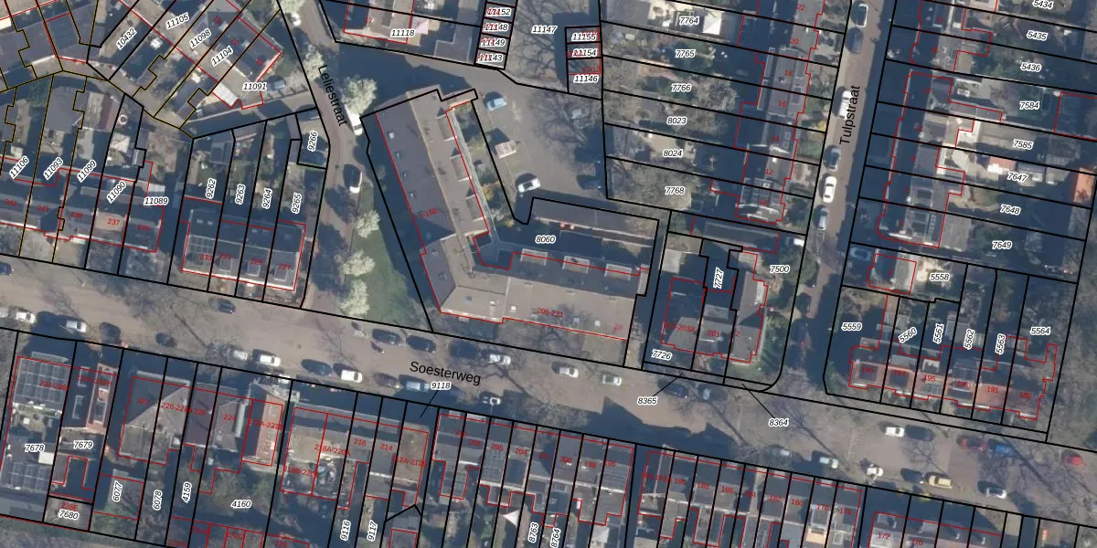 Soesterweg 219 is gelegen op kadastraal perceel AMF00D8060. Deze kadastrale aanduiding is uniek en wordt gebruikt door het Kadaster om eigendomsrechten en andere zakelijke rechten vast te leggen. Het perceel maakt onderdeel uit van de kadastrale gemeente Amersfoort.