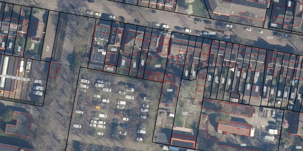 Soesterweg 222-3 is gelegen op kadastraal perceel AMF00D4160. Deze kadastrale aanduiding is uniek en wordt gebruikt door het Kadaster om eigendomsrechten en andere zakelijke rechten vast te leggen. Het perceel maakt onderdeel uit van de kadastrale gemeente Amersfoort.