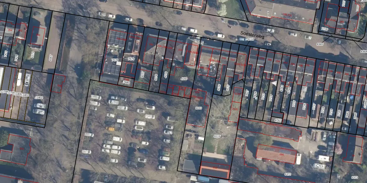 Soesterweg 222-2 is gelegen op kadastraal perceel AMF00D4160. Deze kadastrale aanduiding is uniek en wordt gebruikt door het Kadaster om eigendomsrechten en andere zakelijke rechten vast te leggen. Het perceel maakt onderdeel uit van de kadastrale gemeente Amersfoort.