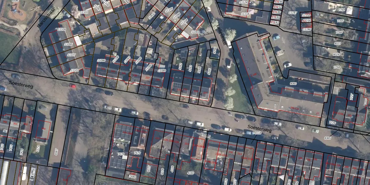 Soesterweg 231 is gelegen op kadastraal perceel AMF00D9263. Deze kadastrale aanduiding is uniek en wordt gebruikt door het Kadaster om eigendomsrechten en andere zakelijke rechten vast te leggen. Het perceel maakt onderdeel uit van de kadastrale gemeente Amersfoort.