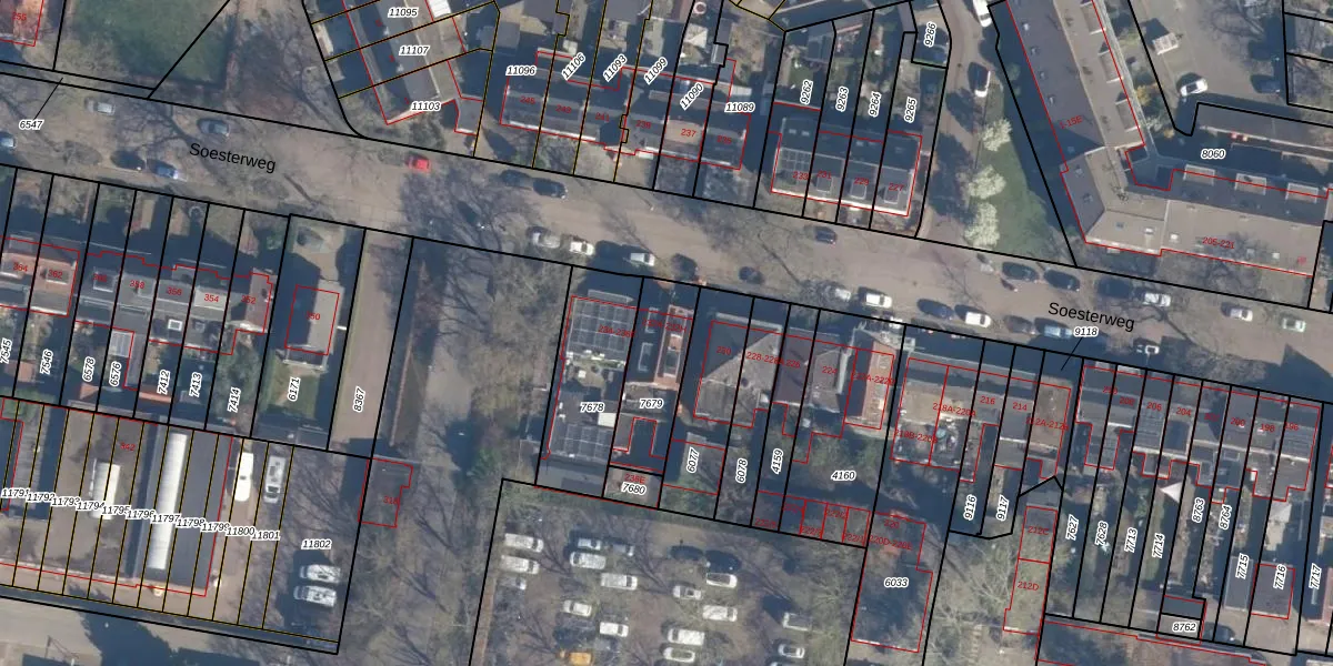 Soesterweg 232-B is gelegen op kadastraal perceel AMF00D7679. Deze kadastrale aanduiding is uniek en wordt gebruikt door het Kadaster om eigendomsrechten en andere zakelijke rechten vast te leggen. Het perceel maakt onderdeel uit van de kadastrale gemeente Amersfoort.
