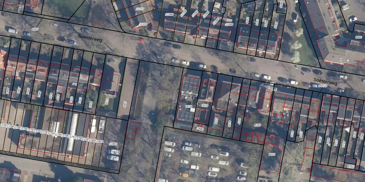 Het perceel waarop Soesterweg 234 staat heeft een oppervlakte van 358 m². Dit is een groot perceel. De perceeloppervlakte wordt geregistreerd door het Kadaster. Gedetailleerde informatie over de maten van dit perceel kunt u vinden in het rapport Kadastrale kaart met maatvoering van Soesterweg 234.