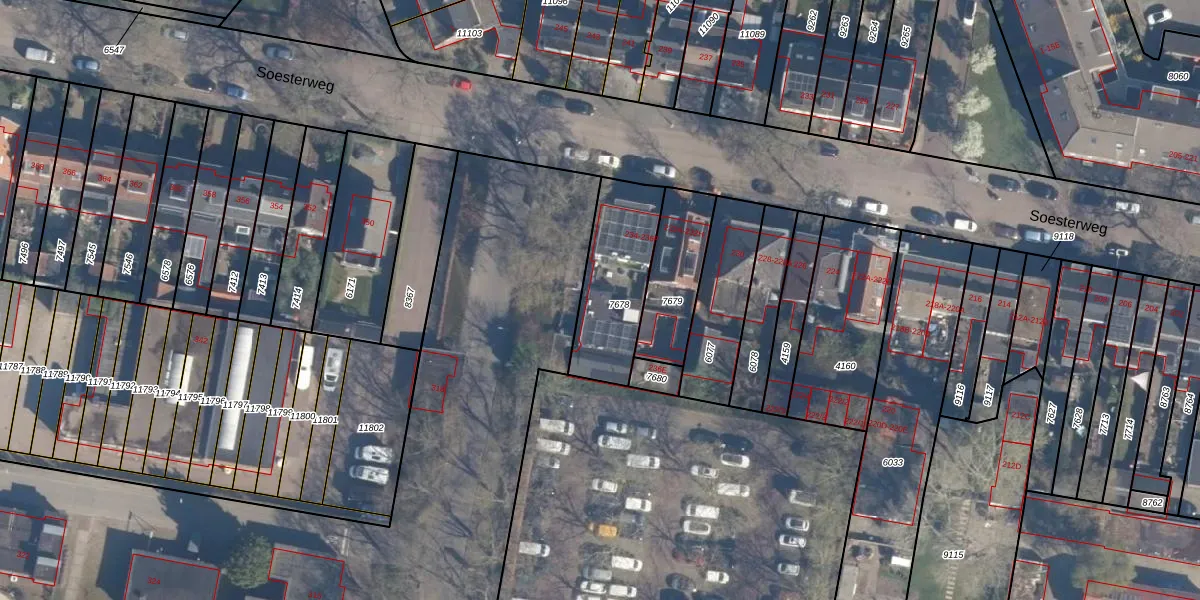 Het perceel waarop Soesterweg 236-C staat heeft een oppervlakte van 358 m². Dit is een groot perceel. De perceeloppervlakte wordt geregistreerd door het Kadaster. Gedetailleerde informatie over de maten van dit perceel kunt u vinden in het rapport Kadastrale kaart met maatvoering van Soesterweg 236-C.