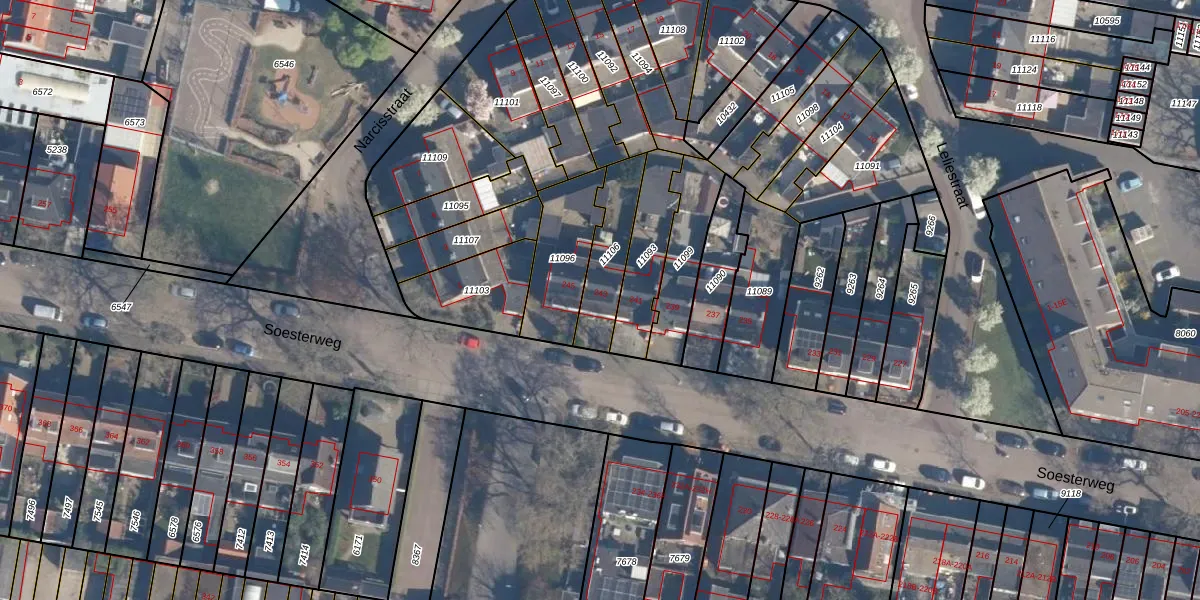 Soesterweg 243 is gelegen op kadastraal perceel AMF00D11106. Deze kadastrale aanduiding is uniek en wordt gebruikt door het Kadaster om eigendomsrechten en andere zakelijke rechten vast te leggen. Het perceel maakt onderdeel uit van de kadastrale gemeente Amersfoort.