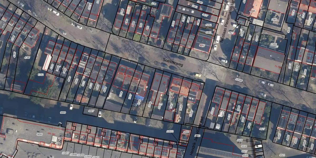 Soesterweg 32 is gelegen op kadastraal perceel AMF00D7046. Deze kadastrale aanduiding is uniek en wordt gebruikt door het Kadaster om eigendomsrechten en andere zakelijke rechten vast te leggen. Het perceel maakt onderdeel uit van de kadastrale gemeente Amersfoort.