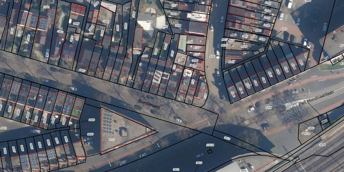 Soesterweg 33 is gelegen op kadastraal perceel AMF00H272. Deze kadastrale aanduiding is uniek en wordt gebruikt door het Kadaster om eigendomsrechten en andere zakelijke rechten vast te leggen. Het perceel maakt onderdeel uit van de kadastrale gemeente Amersfoort.