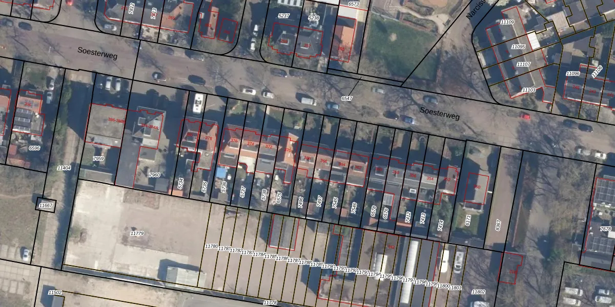 Soesterweg 368 is gelegen op kadastraal perceel AMF00D7496. Deze kadastrale aanduiding is uniek en wordt gebruikt door het Kadaster om eigendomsrechten en andere zakelijke rechten vast te leggen. Het perceel maakt onderdeel uit van de kadastrale gemeente Amersfoort.