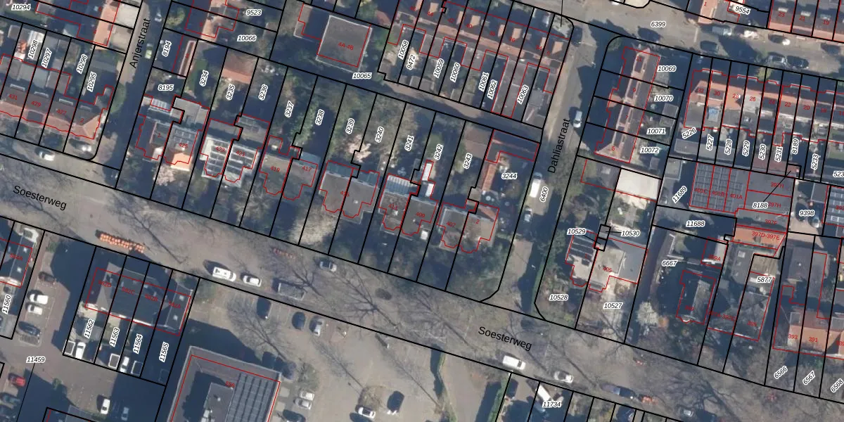 Soesterweg 409 is gelegen op kadastraal perceel AMF00D3242. Deze kadastrale aanduiding is uniek en wordt gebruikt door het Kadaster om eigendomsrechten en andere zakelijke rechten vast te leggen. Het perceel maakt onderdeel uit van de kadastrale gemeente Amersfoort.