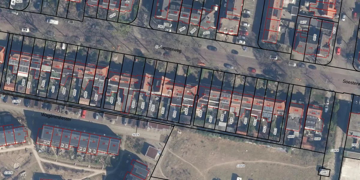 Soesterweg 418 is gelegen op kadastraal perceel AMF00D5004. Deze kadastrale aanduiding is uniek en wordt gebruikt door het Kadaster om eigendomsrechten en andere zakelijke rechten vast te leggen. Het perceel maakt onderdeel uit van de kadastrale gemeente Amersfoort.