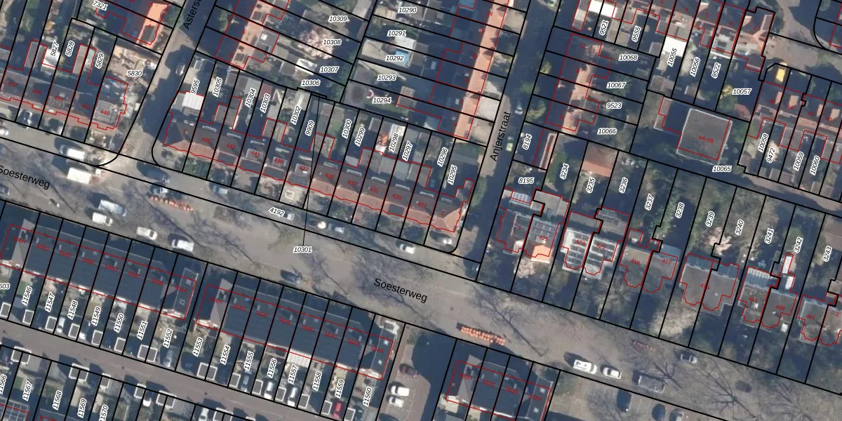 Soesterweg 427 is gelegen op kadastraal perceel AMF00D10296. Deze kadastrale aanduiding is uniek en wordt gebruikt door het Kadaster om eigendomsrechten en andere zakelijke rechten vast te leggen. Het perceel maakt onderdeel uit van de kadastrale gemeente Amersfoort.