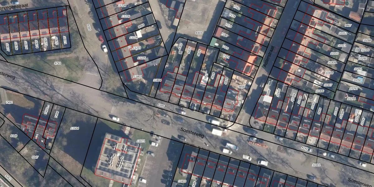 Gebruik de zoekbalk of klik op een perceel voor informatie over de adressen binnen dit perceel.