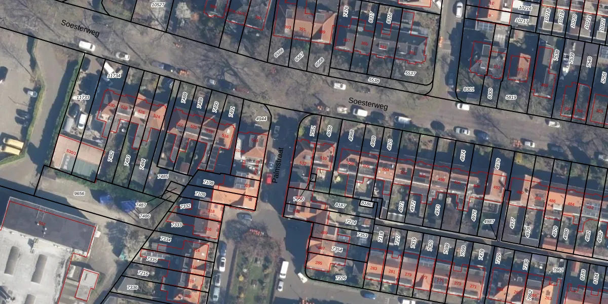 Gebruik de zoekbalk of klik op een perceel voor informatie over de adressen binnen dit perceel.