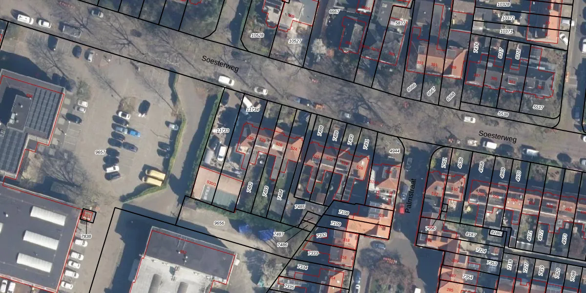 Soesterweg 524 is gelegen op kadastraal perceel AMF00D7484. Deze kadastrale aanduiding is uniek en wordt gebruikt door het Kadaster om eigendomsrechten en andere zakelijke rechten vast te leggen. Het perceel maakt onderdeel uit van de kadastrale gemeente Amersfoort.