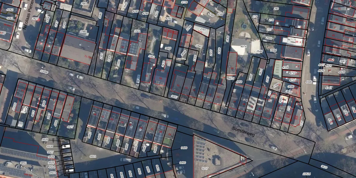 Soesterweg 55 is gelegen op kadastraal perceel AMF00H3697. Deze kadastrale aanduiding is uniek en wordt gebruikt door het Kadaster om eigendomsrechten en andere zakelijke rechten vast te leggen. Het perceel maakt onderdeel uit van de kadastrale gemeente Amersfoort.