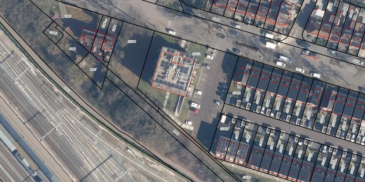Soesterweg 568-J is gelegen op kadastraal perceel AMF00D11671. Deze kadastrale aanduiding is uniek en wordt gebruikt door het Kadaster om eigendomsrechten en andere zakelijke rechten vast te leggen. Het perceel maakt onderdeel uit van de kadastrale gemeente Amersfoort.