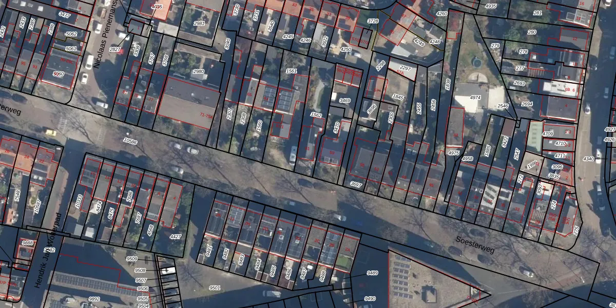 Soesterweg 61 is gelegen op kadastraal perceel AMF00H1562. Deze kadastrale aanduiding is uniek en wordt gebruikt door het Kadaster om eigendomsrechten en andere zakelijke rechten vast te leggen. Het perceel maakt onderdeel uit van de kadastrale gemeente Amersfoort.