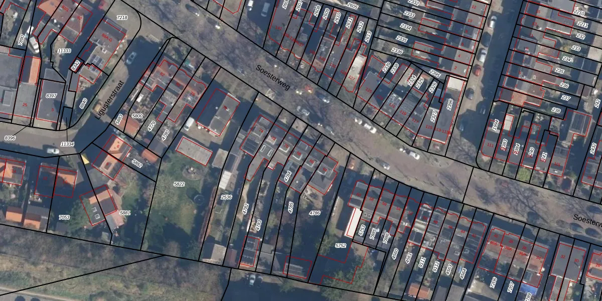 Gebruik de zoekbalk of klik op een perceel voor informatie over de adressen binnen dit perceel.