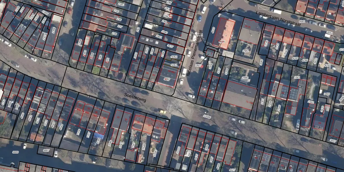 Soesterweg 91 is gelegen op kadastraal perceel AMF00H5060. Deze kadastrale aanduiding is uniek en wordt gebruikt door het Kadaster om eigendomsrechten en andere zakelijke rechten vast te leggen. Het perceel maakt onderdeel uit van de kadastrale gemeente Amersfoort.