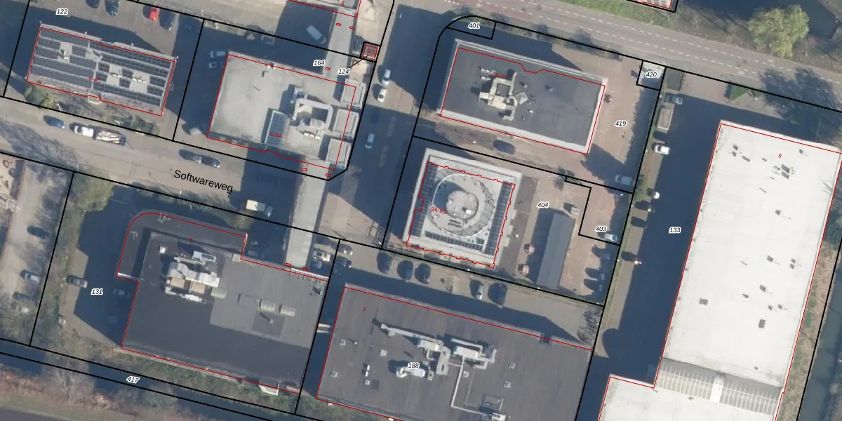 Softwareweg 111 is gelegen op kadastraal perceel AMF00M404. Deze kadastrale aanduiding is uniek en wordt gebruikt door het Kadaster om eigendomsrechten en andere zakelijke rechten vast te leggen. Het perceel maakt onderdeel uit van de kadastrale gemeente Amersfoort.