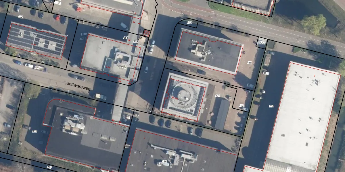 Het perceel waarop Softwareweg 155 staat heeft een oppervlakte van 1372 m². Dit is een zeer groot perceel. De perceeloppervlakte wordt geregistreerd door het Kadaster. Gedetailleerde informatie over de maten van dit perceel kunt u vinden in het rapport Kadastrale kaart met maatvoering van Softwareweg 155.