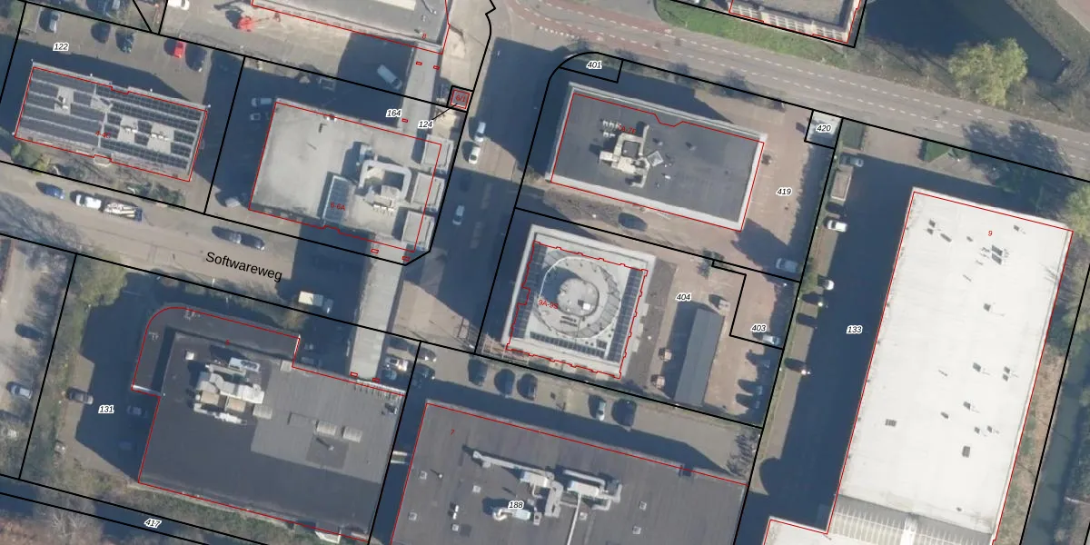 Softwareweg 181 is gelegen op kadastraal perceel AMF00M404. Deze kadastrale aanduiding is uniek en wordt gebruikt door het Kadaster om eigendomsrechten en andere zakelijke rechten vast te leggen. Het perceel maakt onderdeel uit van de kadastrale gemeente Amersfoort.