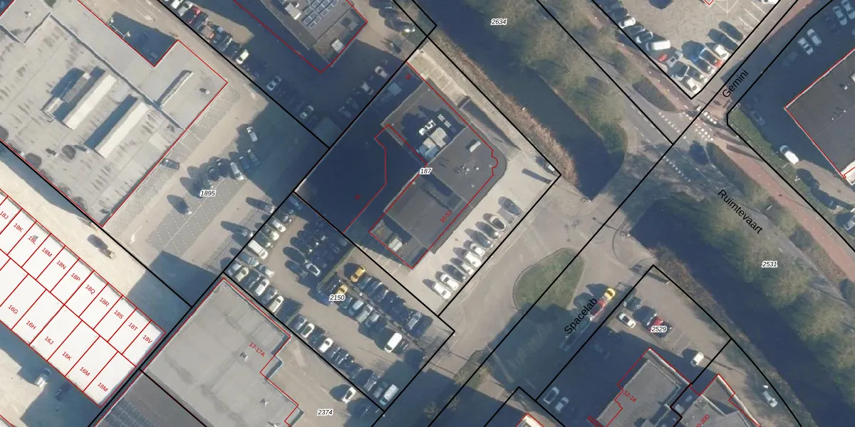 Het perceel waarop Spacelab 45 staat heeft een oppervlakte van 2065 m². Dit is een zeer groot perceel. De perceeloppervlakte wordt geregistreerd door het Kadaster. Gedetailleerde informatie over de maten van dit perceel kunt u vinden in het rapport Kadastrale kaart met maatvoering van Spacelab 45.