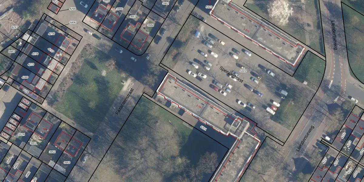 Het perceel waarop Sperwerhorst 4 staat heeft een oppervlakte van 2434 m². Dit is een zeer groot perceel. De perceeloppervlakte wordt geregistreerd door het Kadaster. Gedetailleerde informatie over de maten van dit perceel kunt u vinden in het rapport Kadastrale kaart met maatvoering van Sperwerhorst 4.
