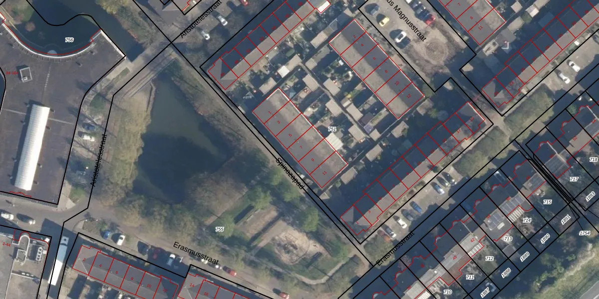 Het perceel waarop Spinozapad 7 staat heeft een oppervlakte van 4495 m². Dit is een zeer groot perceel. De perceeloppervlakte wordt geregistreerd door het Kadaster. Gedetailleerde informatie over de maten van dit perceel kunt u vinden in het rapport Kadastrale kaart met maatvoering van Spinozapad 7.